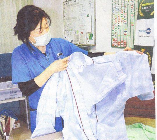 中国新聞に掲載(肩・腕開き病衣)